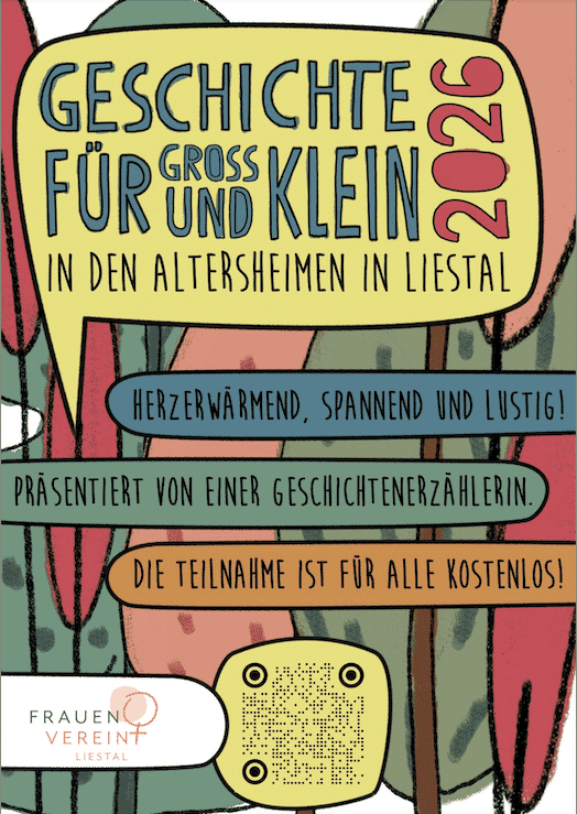 Eine Geschichtenerzählerin präsentiert Kindern und Bewohner:innen mehrmals im Jahr eine spannende, lustige und herzerwärmende Geschichte im Seniorenheim Tertianum. Wir vom Frauenverein Liestal möchten Generationen verbinden. Gemeinsam wird gesungen, gelacht und gelauscht. Babies und Kinder bis ca. 10 Jahre sind herzlich mit einer Begleitperson willkommen. Da die Plätze begrenzt sind, lohnt sich eine frühzeitige Anmeldung. Den Treffpunkt und alle weiteren Infos bekommt ihr mit der Anmeldebestätigung.
